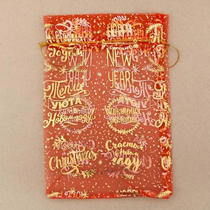 Мешочек подарочный органза Happy new year, 20 х 30 см +/- 1.5 см