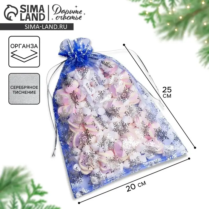Мешочек подарочный органза «Снежинки», 20 х 30 см +/- 1.5 см