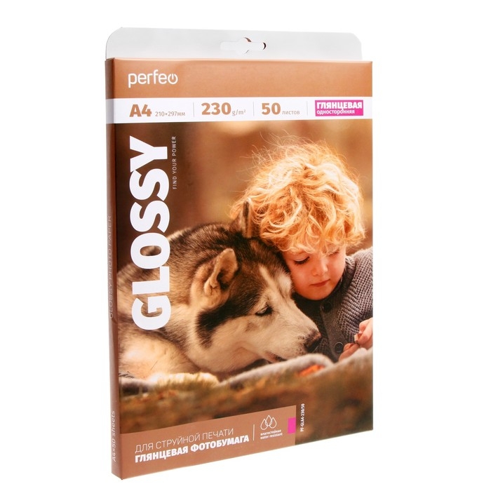 Фотобумага для струйной печати А4, 50 листов Perfeo, 230 г/м2, односторонняя, глянцевая