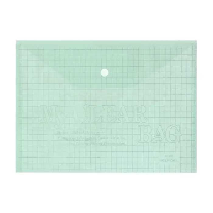 Папка-конверт на кнопке, А4, 80 мкм, "Клетка", тонированная, зелёная