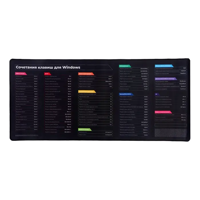Коврик для мыши, 40х90х0.3 см, оверлок, горячие клавиши
