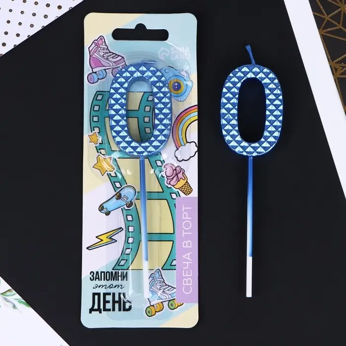 Свеча для торта, цифра «0», синяя, 4 х 13 см