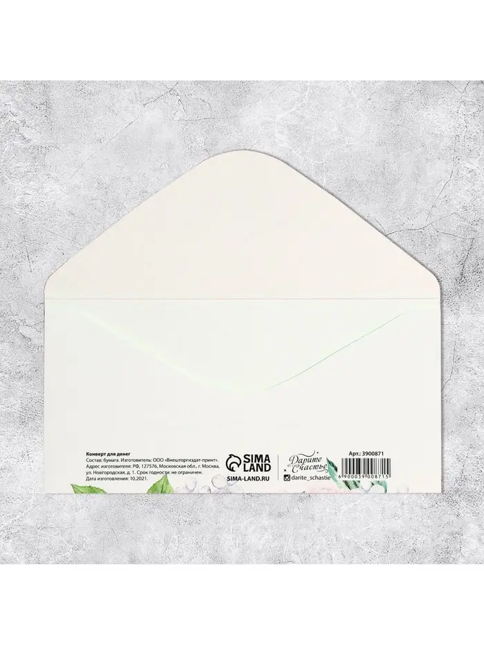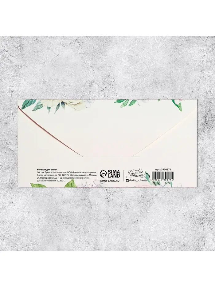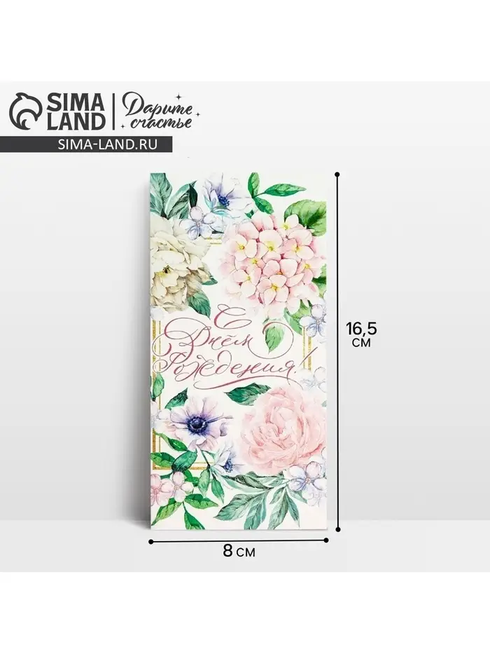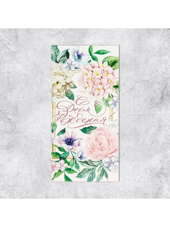 Конверт для денег «С Днем Рождения», нежные цветы, частичный УФ-лак, 16,5 × 8 см