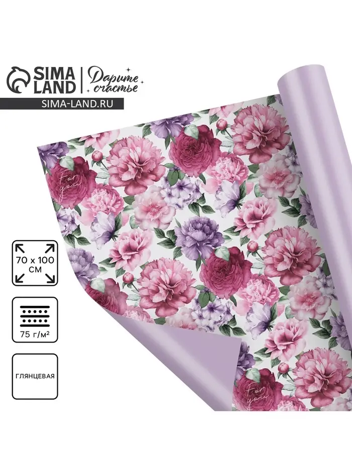 Бумага упаковочная глянцевая двухсторонняя «Цветочный сад», 70×100 см