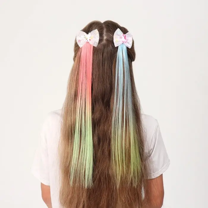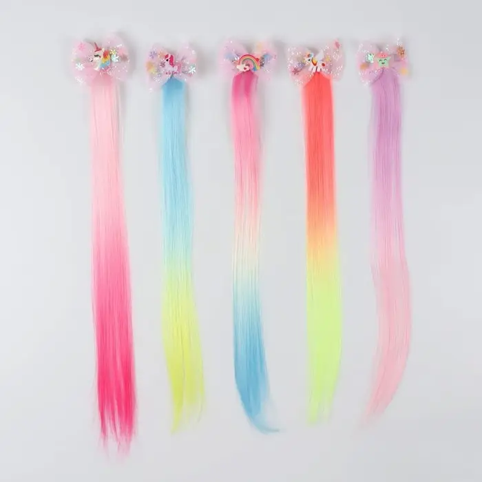 Цветные локоны на заколке — это простой способ быстро изменить образ без вреда для волос. Разноцветные пряди смотрятся ярко и эффектно как на блондинках и русых, так и на рыжеволосых и темноволосых девочках. Благодаря надёжным заколкам изделие крепко держится на голове и не сползает. Пряди легко надеваются и снимаются, позволяя в любой момент поменять цвет волос и образ.