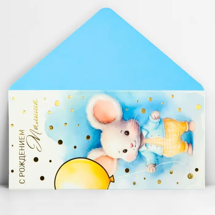 Конверт для денег «С рождением малыша», мышонок, тиснение, 16.5 х 8 см