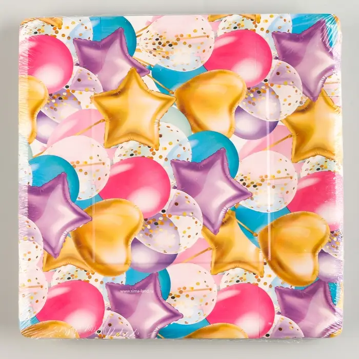 Тарелка одноразовая бумажная квадратная "С днём рождения" шары