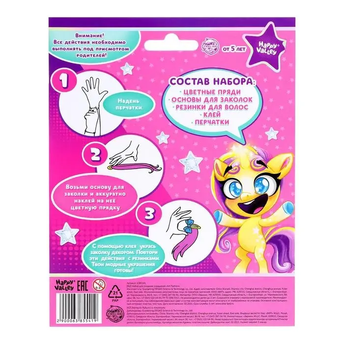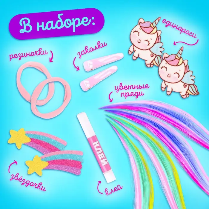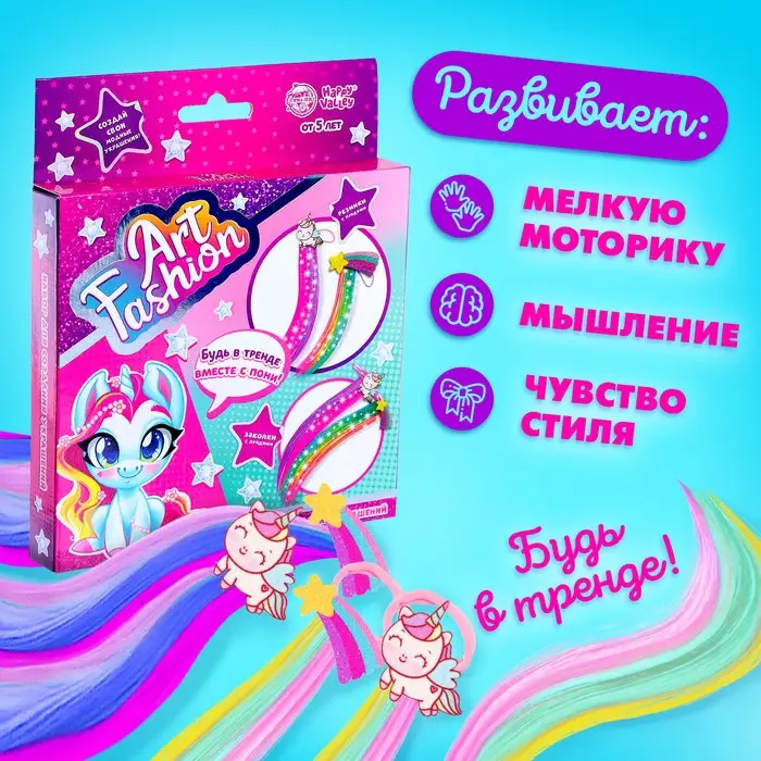 Набор для создания украшений Art Fashion: заколочки и резиночки с прядками, пони