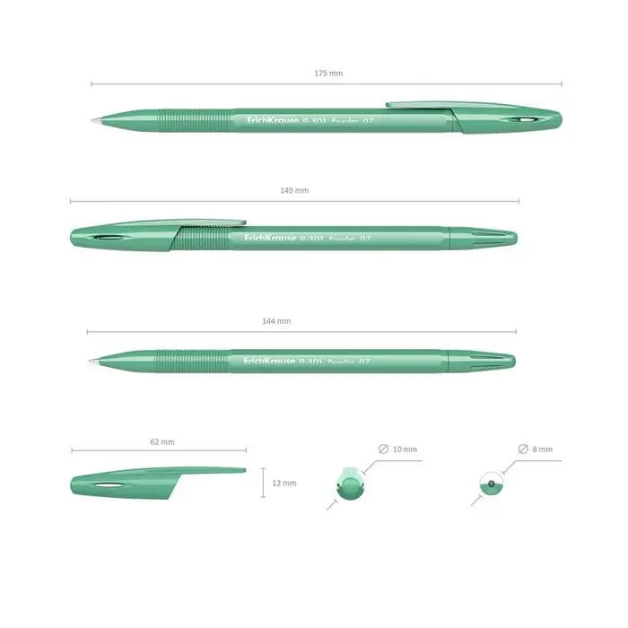 Классическая шариковая ручка Stick со стандартным типом пишущего узла и заменяемым стержнем. Ручка имеет непрозрачный шестигранный корпус нежных пудровых цветов с удобной профилированной грип-зоной и вентилируемый колпачок. 5-канальный пишущий узел с диаметром шарика 0.7 мм в сочетании с быстросохнущими чернилами обеспечивает мягкое и быстрое письмо. Длина непрерывной линии составляет 2000 м при толщине 0.35 мм, что является одним из лучших показателей в своей категории. Модель R-301 Powder Stick 0.7 мм имеет узнаваемую запатентованную форму и продолжает модельный ряд R-301 в новой коллекции.