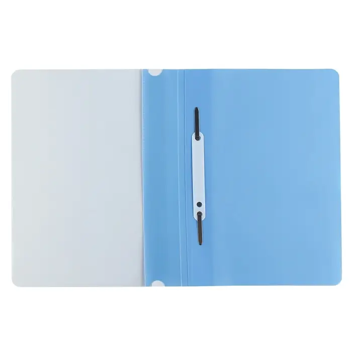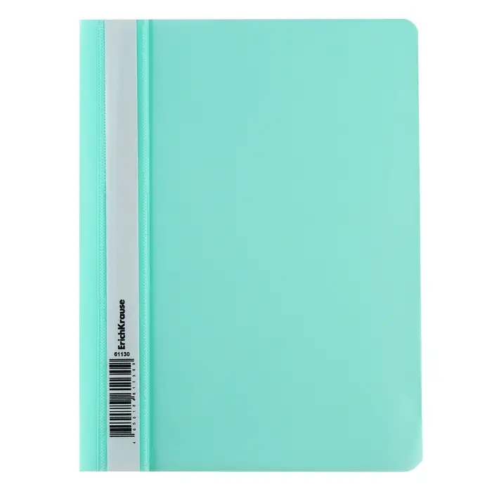 Папка-скоросшиватель формата А5+ из высококачественного пластика с текстурой поверхности "песок", на которой не видно отпечатков пальцев и мелких царапин. Предназначена для быстрого сшивания, хранения и просмотра документов. Цвет папки – ассорти: голубой, зеленый, персиковый, фиолетовый. Механизм - механический скоросшиватель; прозрачный верхний лист; усиленный пластиковый корешок с прозрачной полосой для информационной карточки. Размер - 230х170мм, толщина верхнего листа - 0.12мм, толщина нижнего листа - 0.18мм. Код и штрих-код на каждой единице товара.