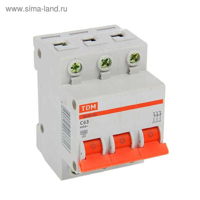 Выключатель автоматический TDM ВА47-63, 3п, 63 А, 4.5 кА