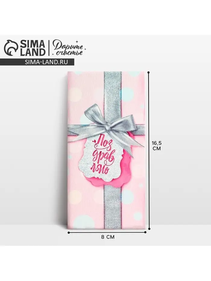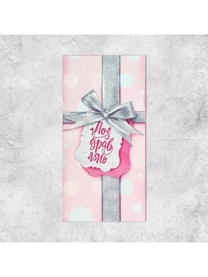 Конверт для денег «Поздравляю!» серебряный бант, 16.5×8 см