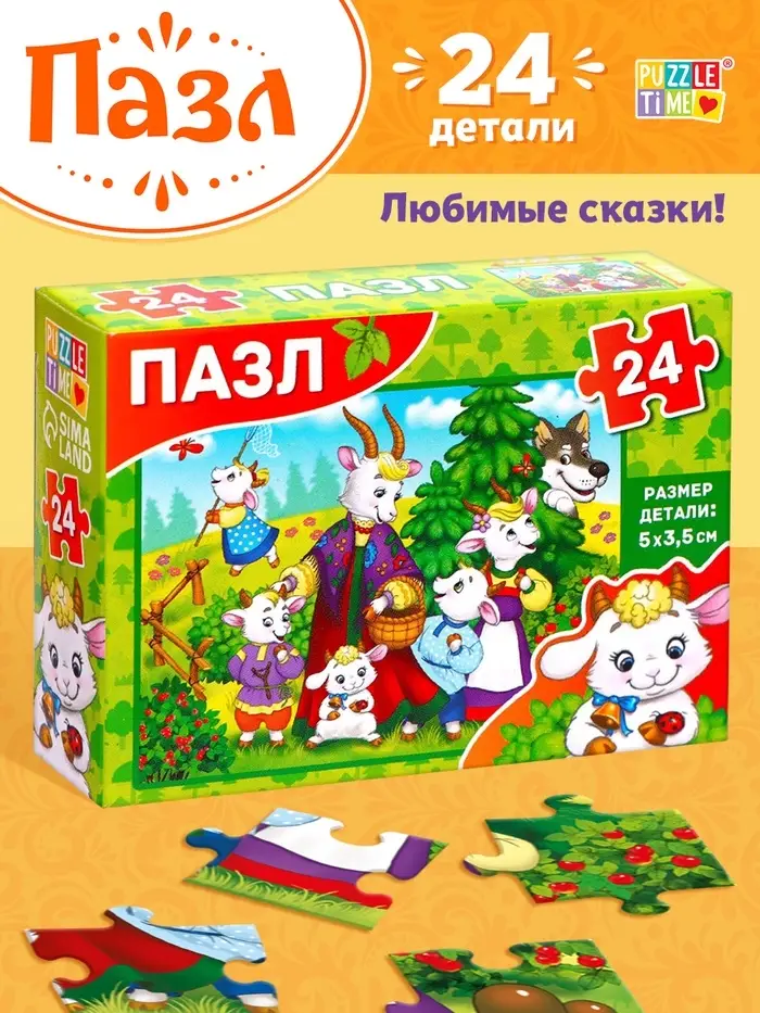 Пазл детские сказки «Волк и семеро козлят», 24 элемента