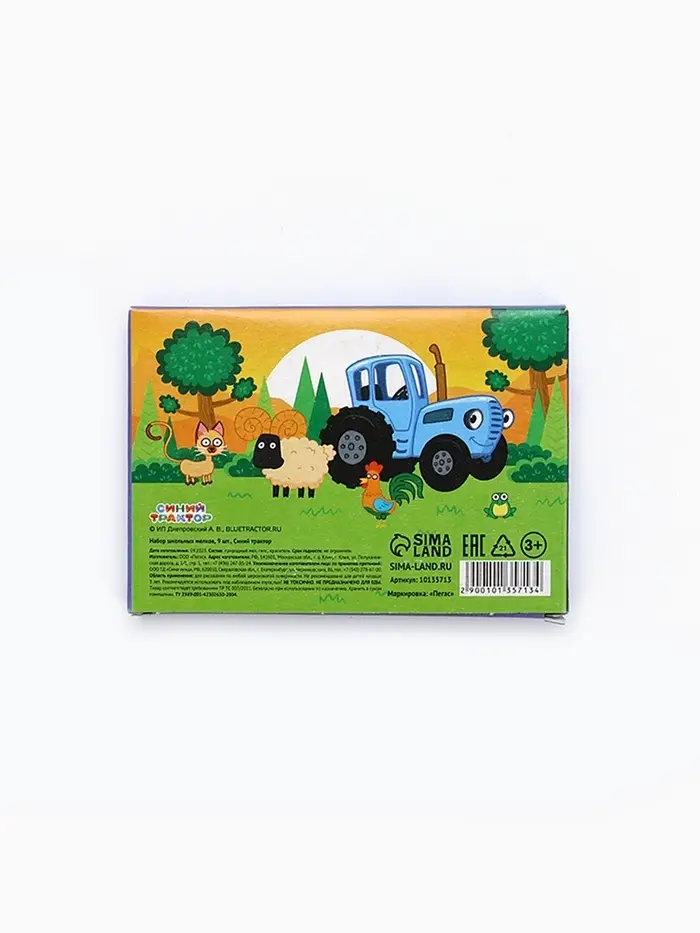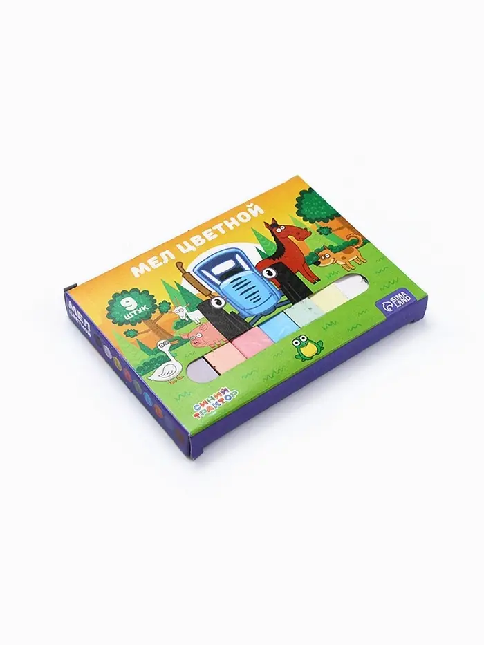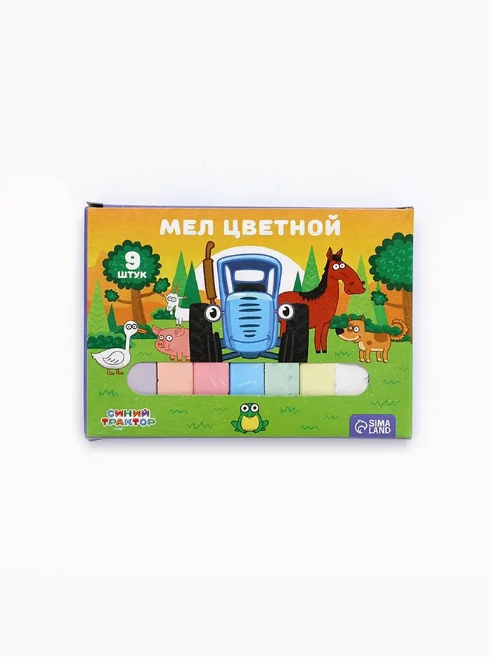 Мелки цветные школьные 9 шт. «Синий трактор», прямоугольные