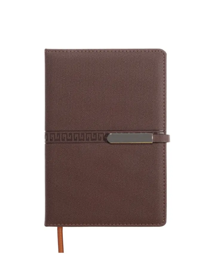 Ежедневник недатированный формат А5, с хлястиком, 112л, линия, пвх, Узор Коричневый