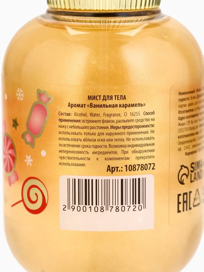 Мист парфюмированный для тела с шиммером, аромат: ванильная карамель, 200 мл, URAL LAB
