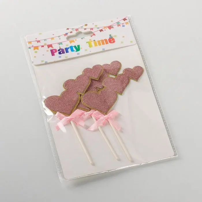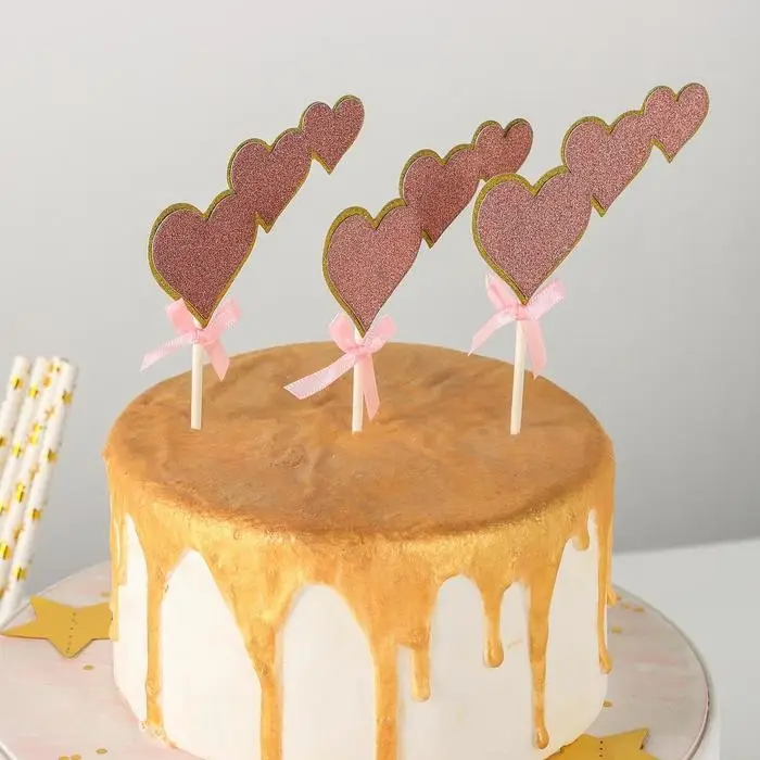 Набор топперов для торта «Сердечки», 3 шт, 20×13 см, цвет розовый