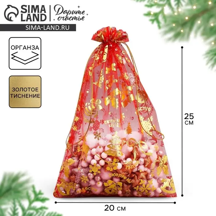 Мешочек подарочный органза «Аромат праздника», 20 х 30 см +/- 1.5 см
