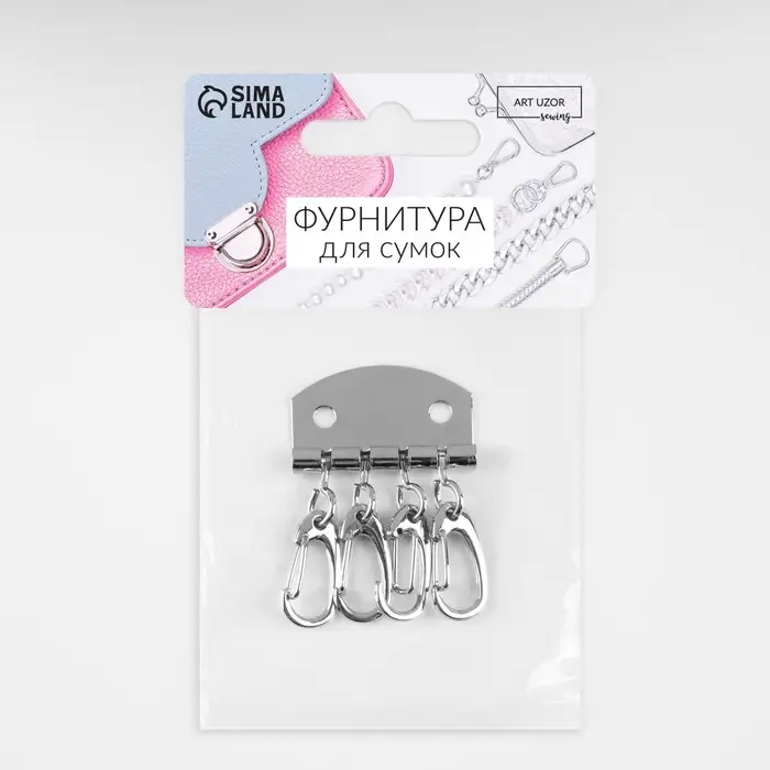 Основа для ключницы, 4 карабина, 34×50 мм, цвет серебряный