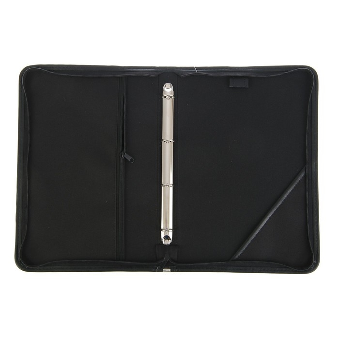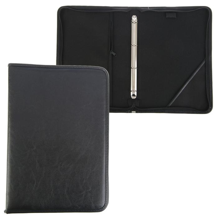 Пaпка деловая, искусственная кожа, для бумаг, 360 х 260 х 30 мм, с кольцевым механизмом 4, 6Л32 "Лайт", чёрная