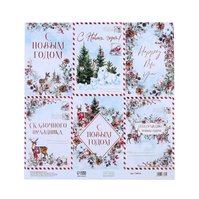 Бумага для скрапбукинга «Сказочный праздник», почта, 30,5 х 32 см, 180 г/м²
