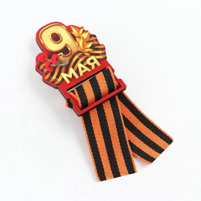 Значок деревянный с георгиевской лентой на 9 мая «Орден», 4.5×6.3 см