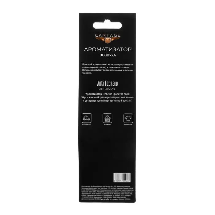 Ароматизатор подвесной Cartage, Антитабак, картонный