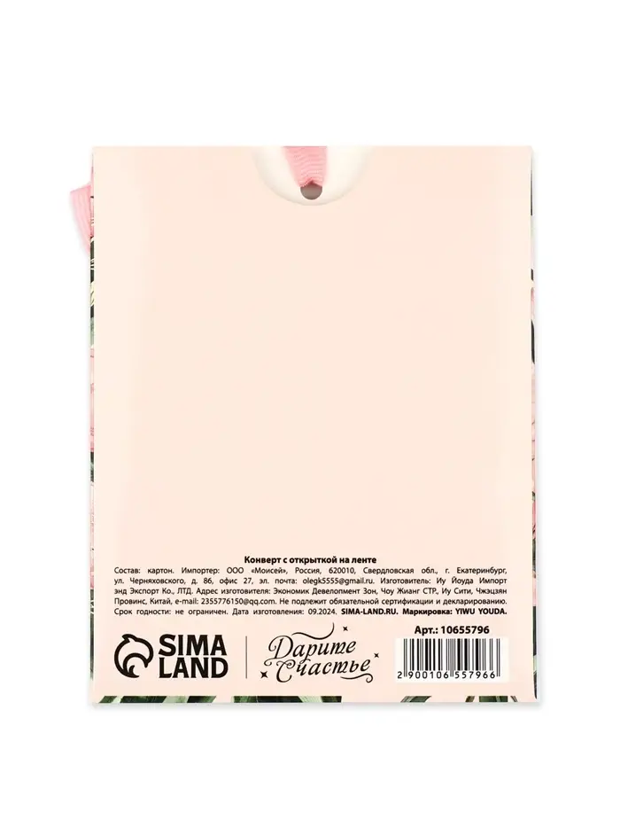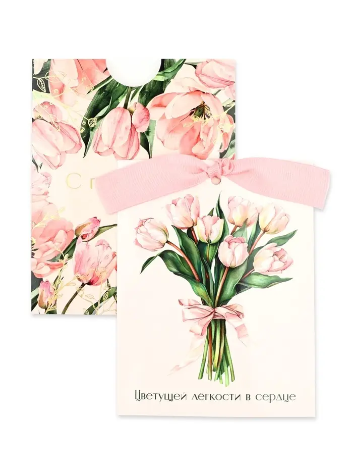Открытка с конвертом на ленте «С пожеланием счастья», тиснение, 10×12.5 см