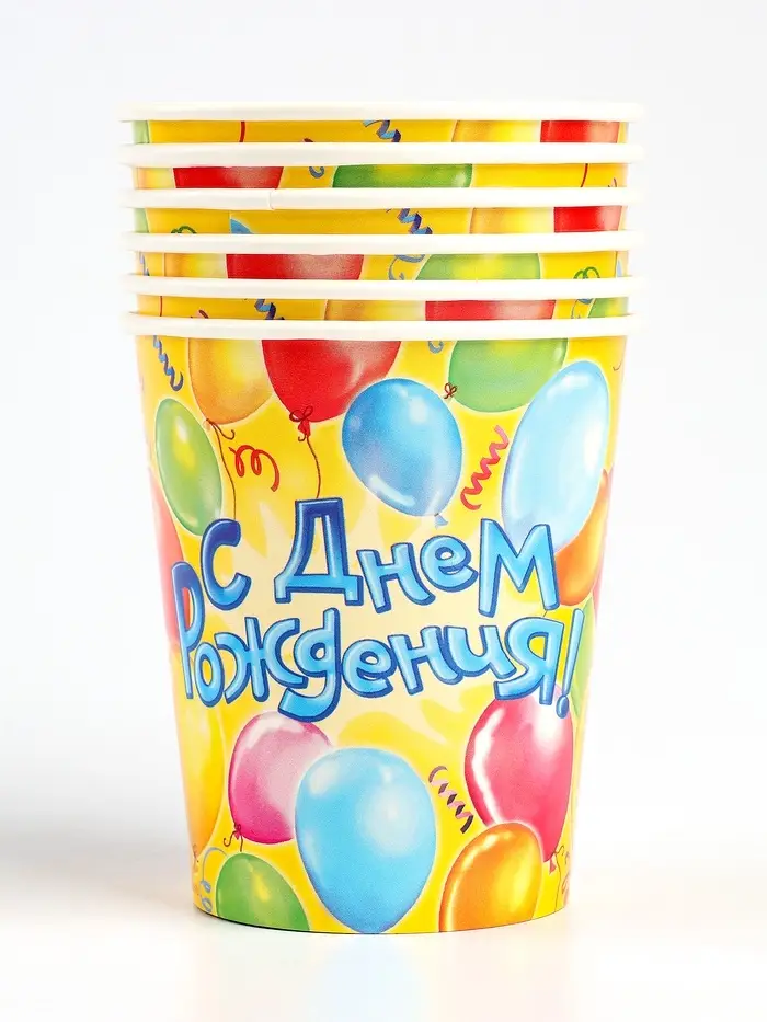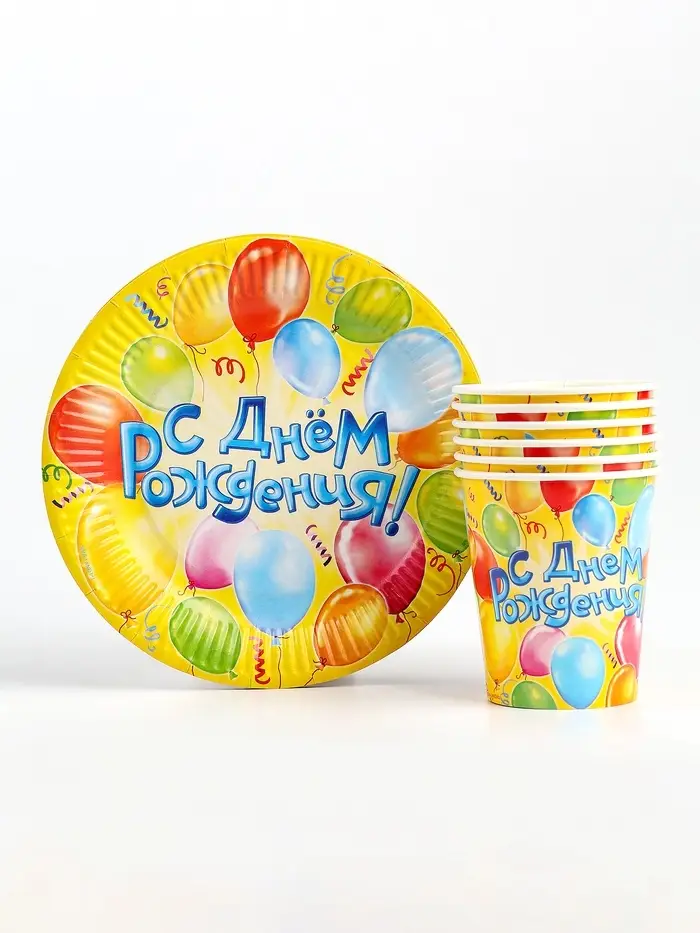 Набор бумажной посуды одноразовый «С днем рождения» воздушные шары: 6 тарелок, 6 стаканов
