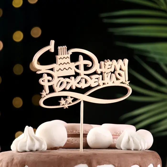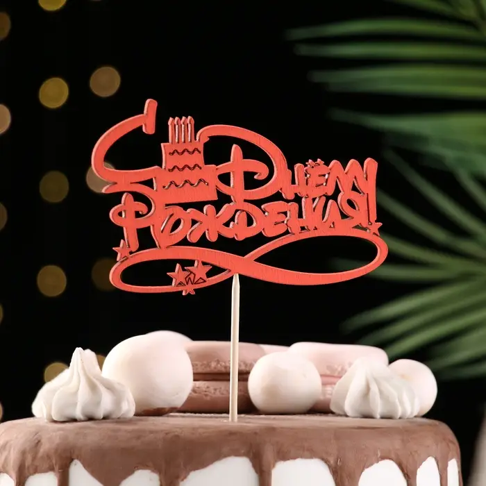 Топпер Ассорти "С Днём Рождения", 1 шт., в фасовке 7 разных топперов Дарим Красиво