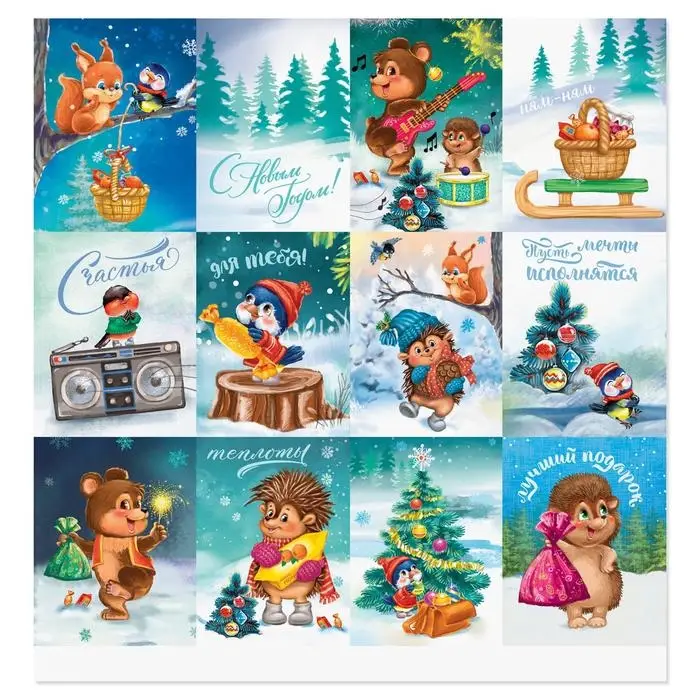 Бумага для скрапбукинга двусторонняя "Лесные звери и пёсики" плотность 180 гр набор 5 шт 30,5х32 см