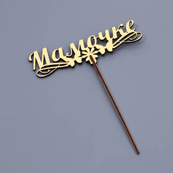Топпер деревянный «Мамочке», золотой, 14.3×4.6 см
