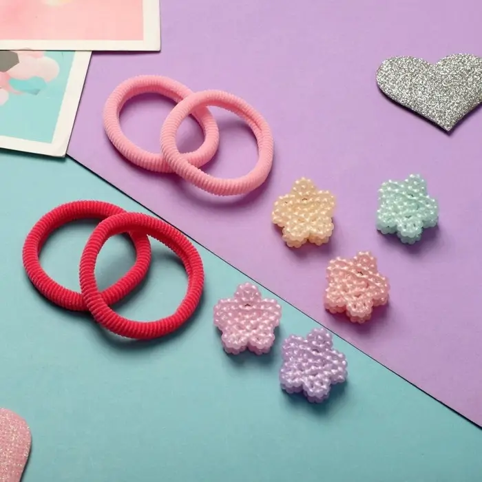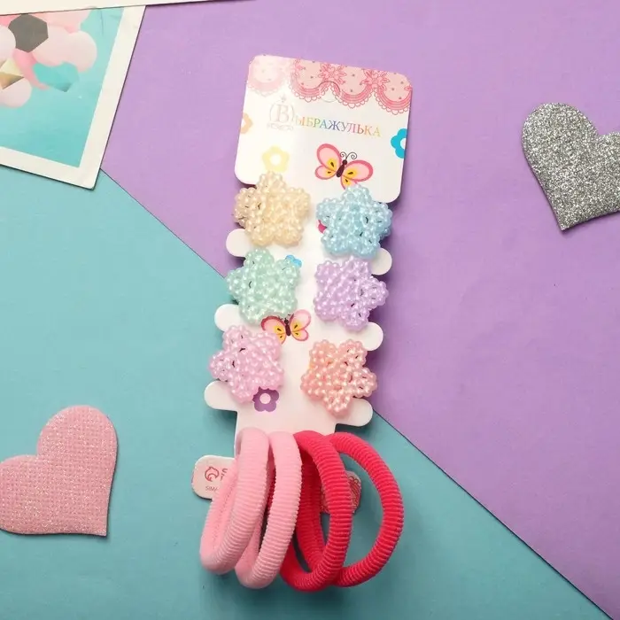 Набор для волос "Бусинка" (4 резинки, 6 крабов) цветочки, 2 см