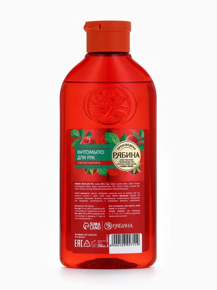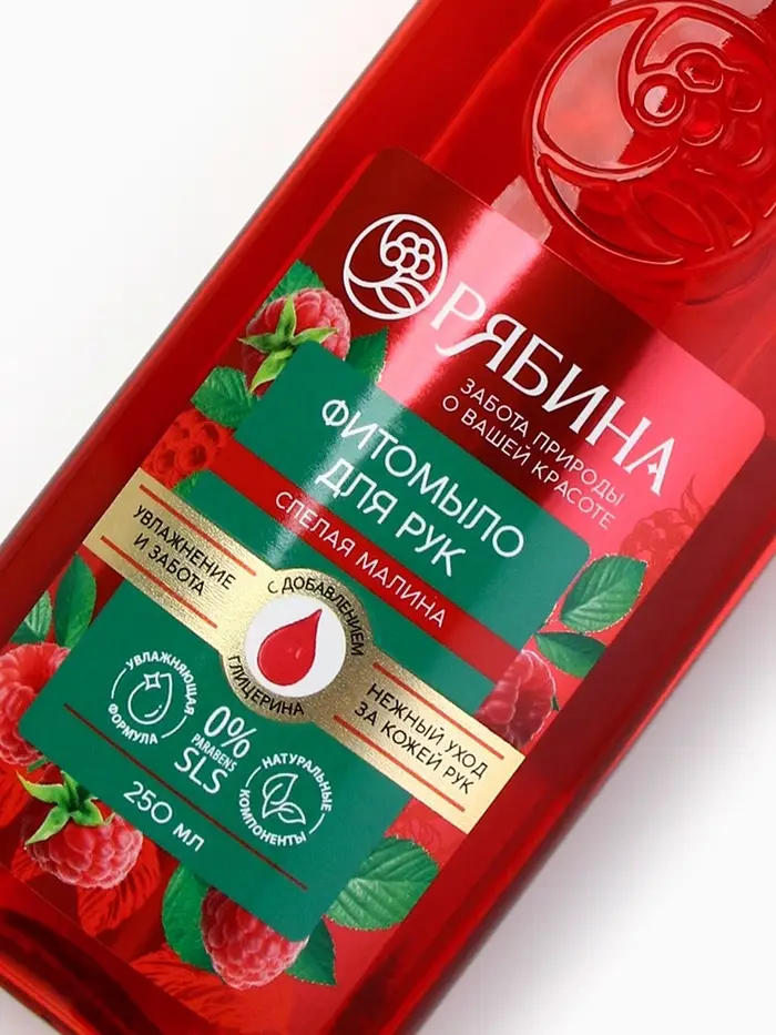 Мыло жидкое для рук, увлажнение и забота, аромат малины, 250 мл, Рябина