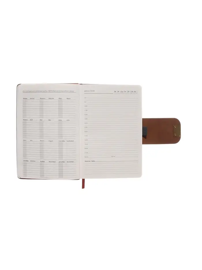 Ежедневник недатированный формат А5, с хлястиком, 96л, линия, пвх, Коричневый