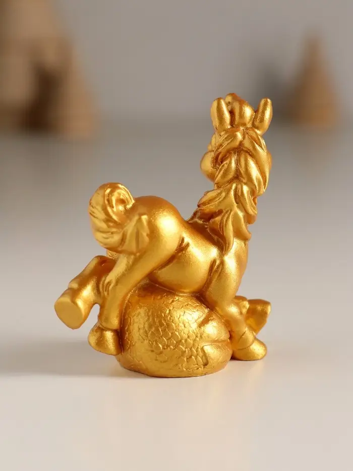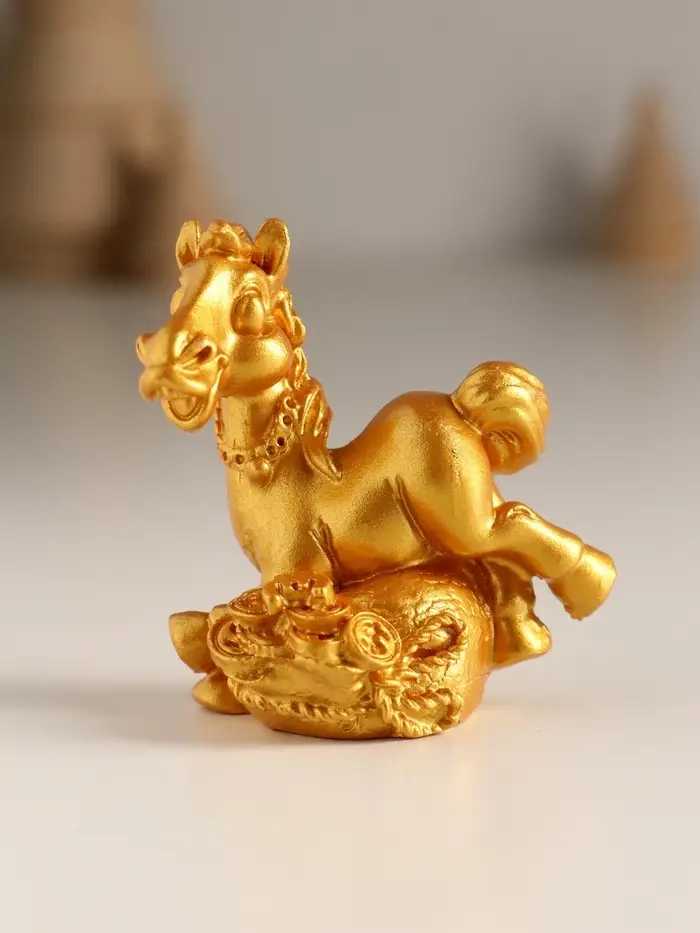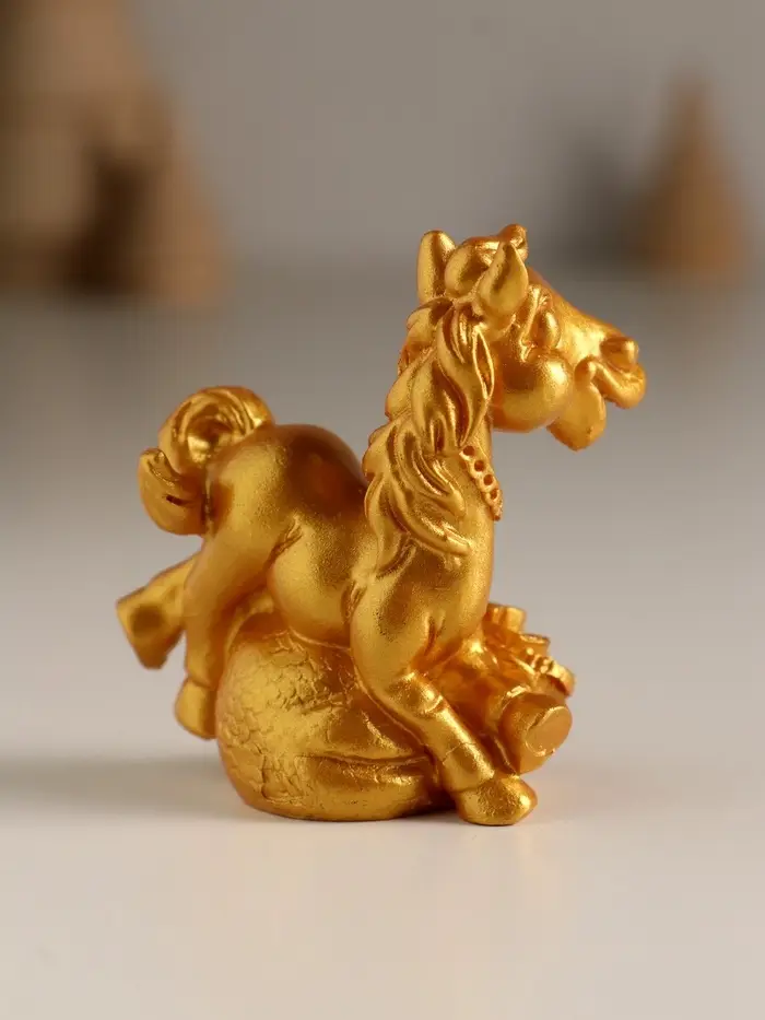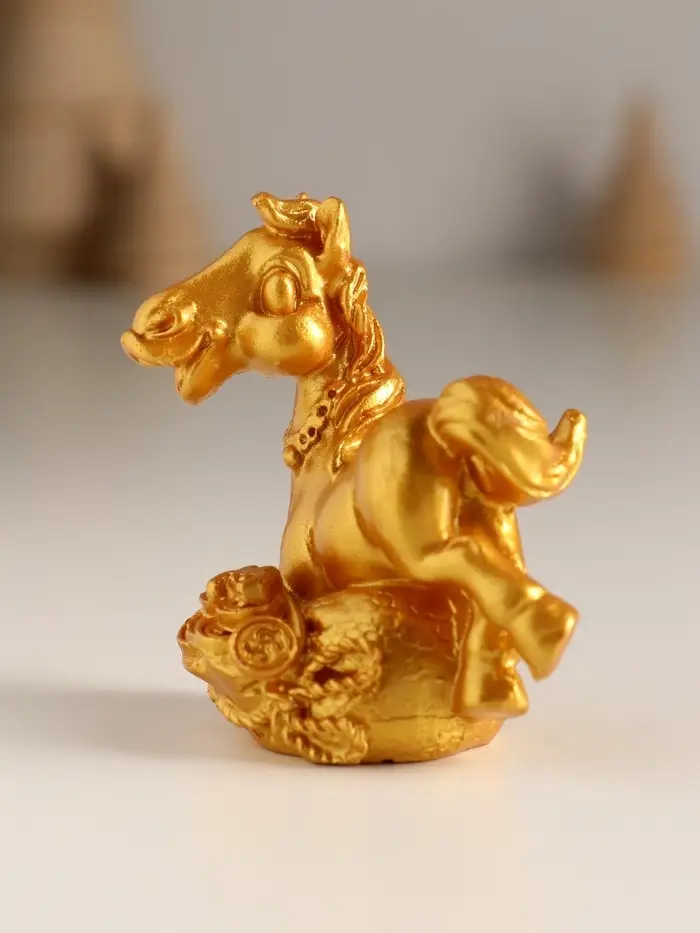 Сувенир полистоун "Золотой конь с богатством" МИКС 5х2,5х6,7 см