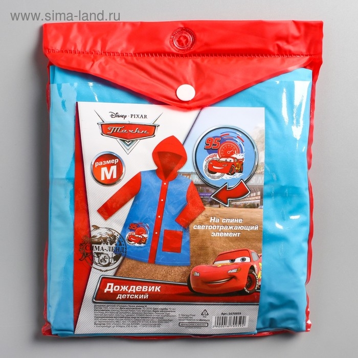 Дождевик детский, размер M, 100-110 см, Тачки