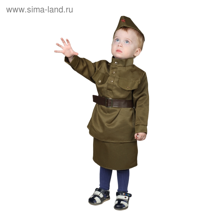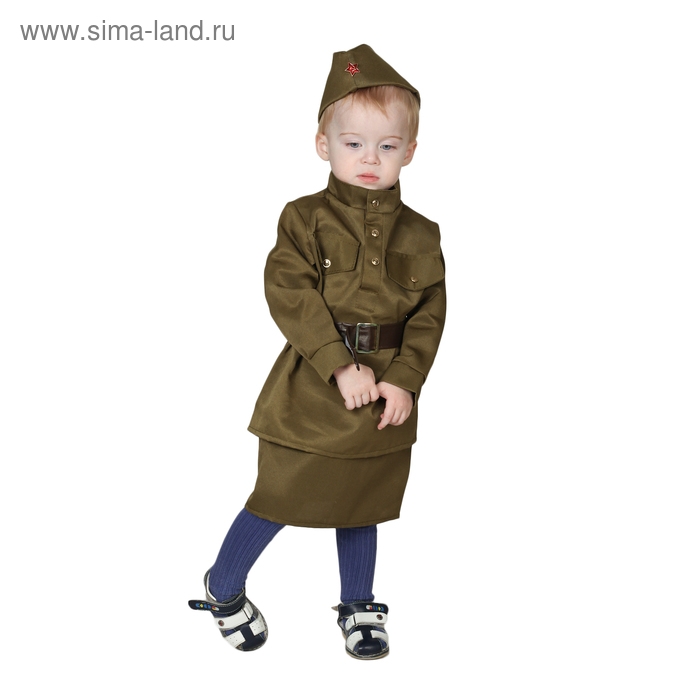 Карнавальный костюм «Солдаточка-малютка», пилотка, гимнастёрка, ремень, юбка, 2-3 года, рост 94-104 см