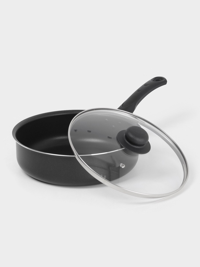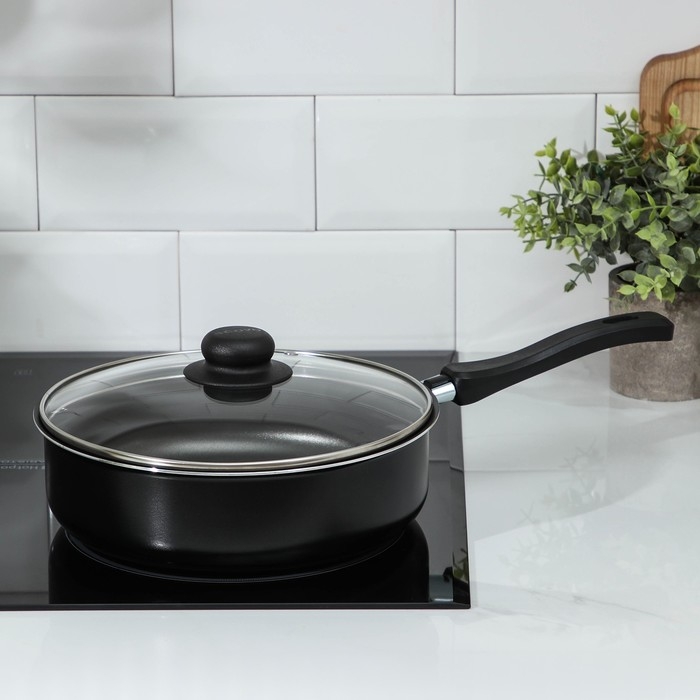 Сотейник Promo, 2.8 л, d=24 см, стеклянная крышка, антипригарное покрытие, алюминий, чёрный