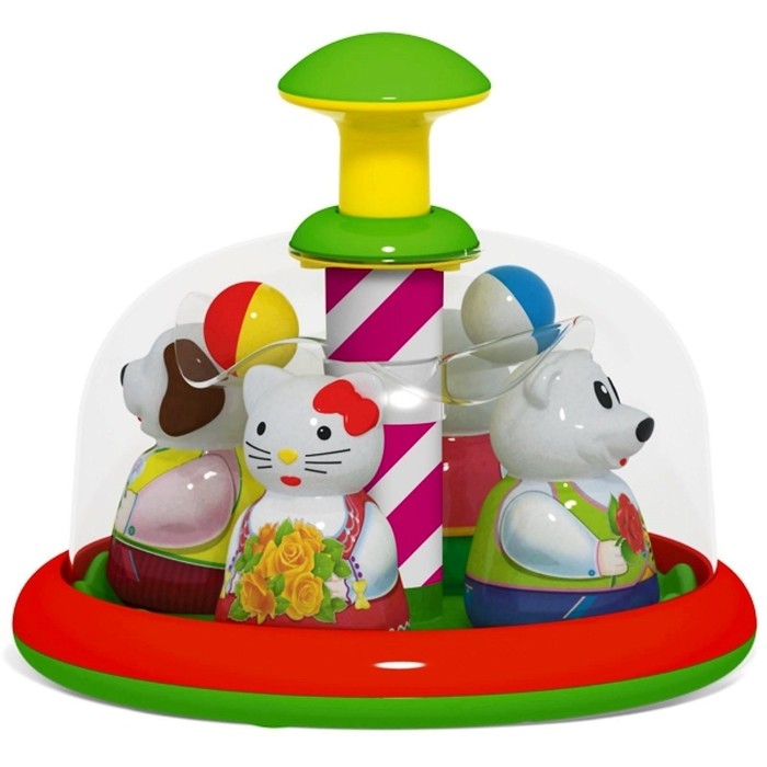 Юла-карусель «Аттракцион» — это удивительная развивающая игрушка для самых маленьких детей. Она напоминает аттракцион в парке, где зверушки катаются на карусели. Малыш сможет самостоятельно запускать юлу и контролировать скорость её вращения, нажимая на большую кнопку сверху. Когда карусель начинает вращаться, зверушки в ярких костюмах притягивают внимание ребёнка.