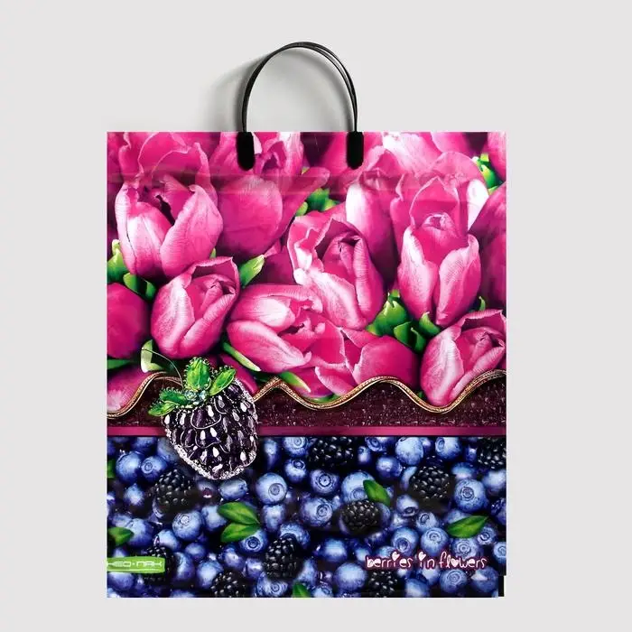 Пакет "Ягоды в цветах", полиэтиленовый с пластиковой ручкой, 38х44 см, 90 мкм