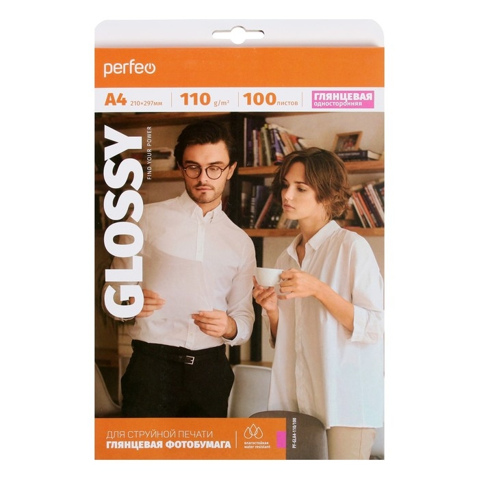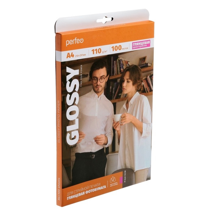 Фотобумага для струйной печати А4, 100 листов Perfeo, 110 г/м2, односторонняя, глянцевая