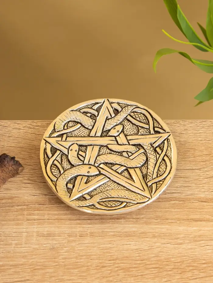 Подставка под благовония "Пентакль и Змеи" алюминий 10,5 см