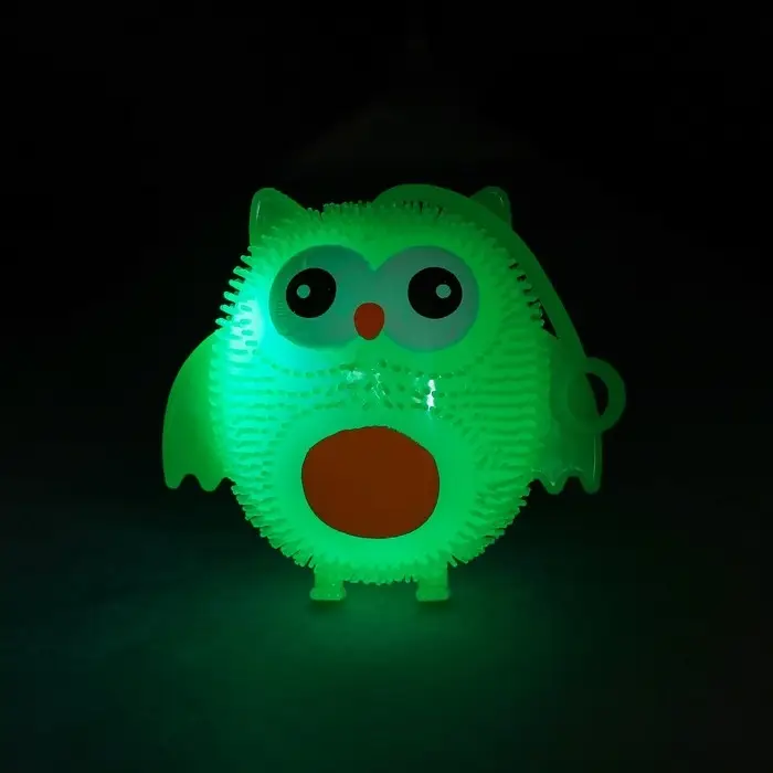 У озорного пушистика есть резиновая верёвочка, за которую удобно держать во время игры. А внутри такого ёжика находится шарик, он светится и мигает при ударе, что очень зрелищно выглядит в темноте. Эта детская игрушка завладеет вниманием малыша — в неё невозможно не влюбиться!