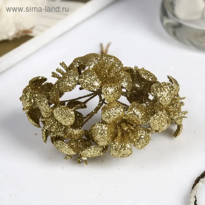 Декор для творчества "Золотые цветы" 10 см (1 набор=1 букету) в букете 12 цветов
