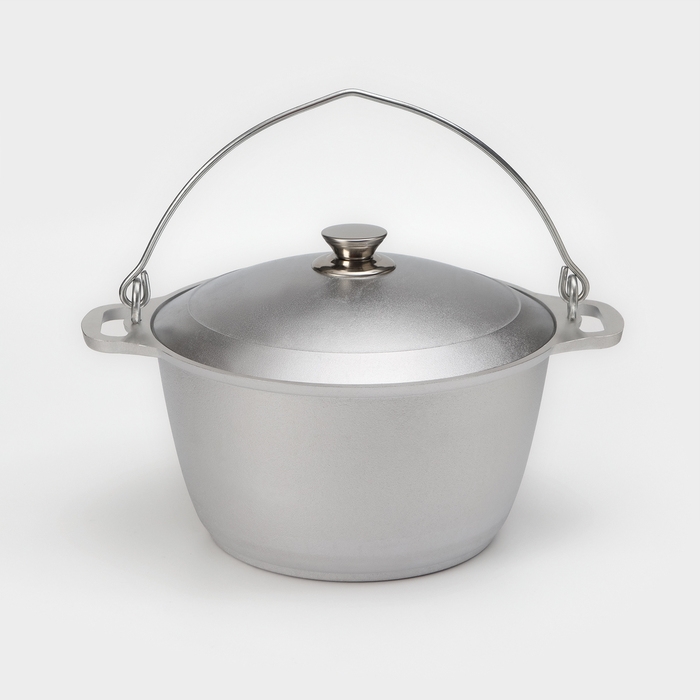 Котёл из литого алюминия пригодится для варки и тушения блюд из мяса, рыбы и овощей. Благодаря большому объёму изделия еды хватит на всех! Такой инструмент незаменим во время похода: благодаря удобной ручке котёл можно легко подвесить над костром.