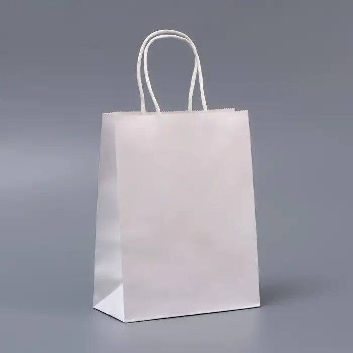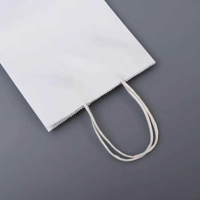 Белый бумажный пакет без печати с круглой ручкой и плотностью 120 г/м² — это стильное и экологичное решение для упаковки и переноски различных товаров. Изготовленный из прочной бумаги с плотностью 120 г/м², этот пакет отличается высокой устойчивостью к разрывам и износу, обеспечивая надежную защиту содержимого.