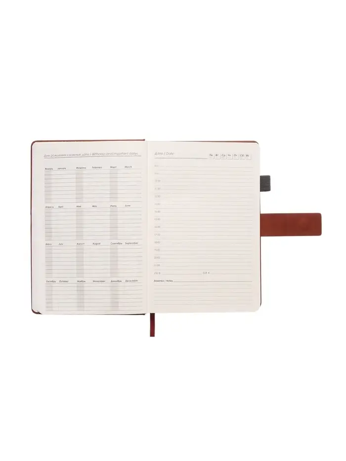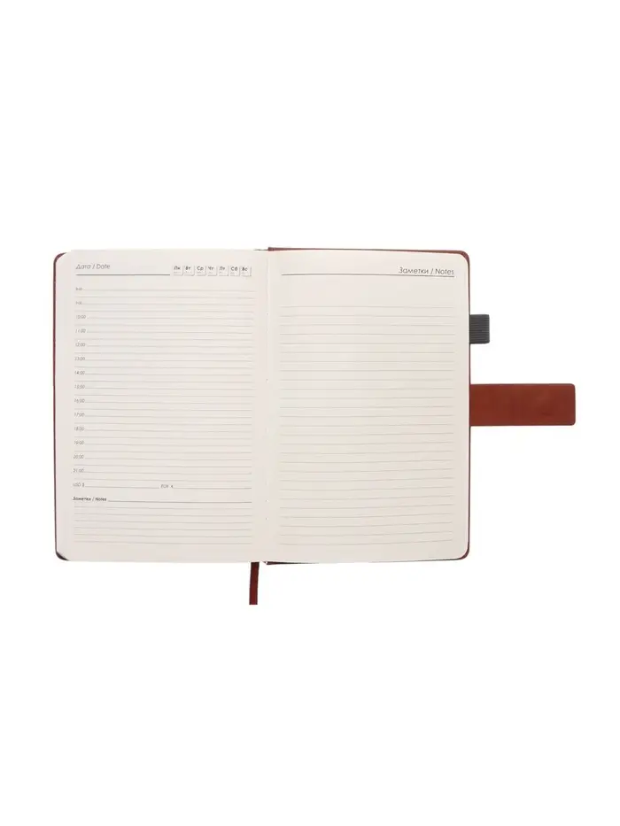 Ежедневник недатированный формат А5, с хлястиком, 128л, линия, пвх, Коричневый