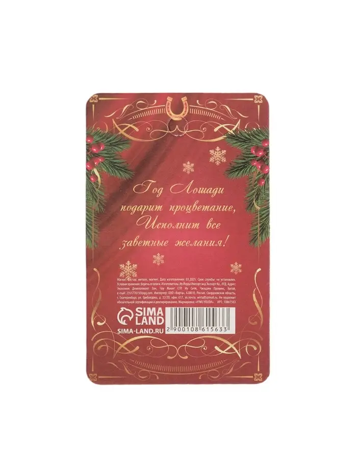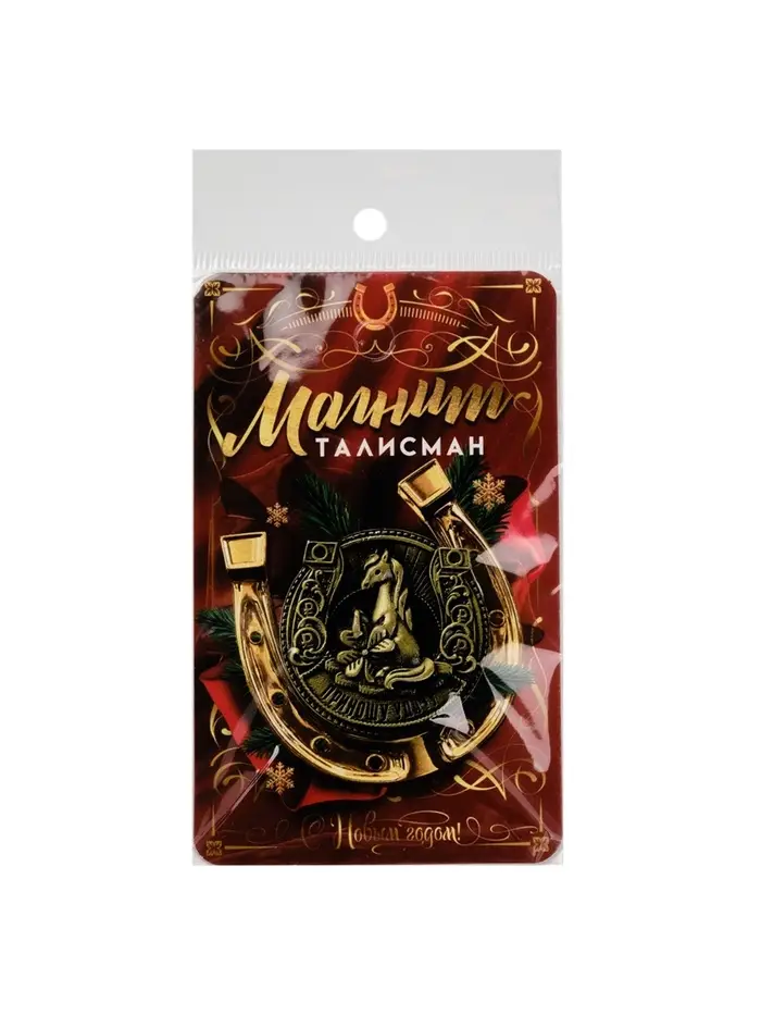 Магнит новогодний на холодильник «Приношу удачу», диам. 4 см, зол
