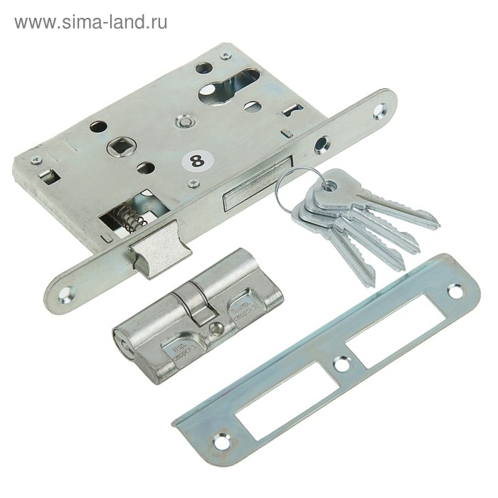 Замок врезной "Птимаш" ЗВ4-3.08 (ЗВ4-1.55) серебро СТЯЖКИ м/о 55 Замок, 4 ключа